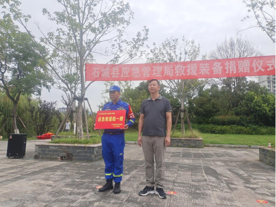 演練開始前,縣應(yīng)急管理局向縣藍(lán)天救援隊(duì)捐贈(zèng)了應(yīng)急救援裝備,為藍(lán)天救援隊(duì)建設(shè)增添力量。