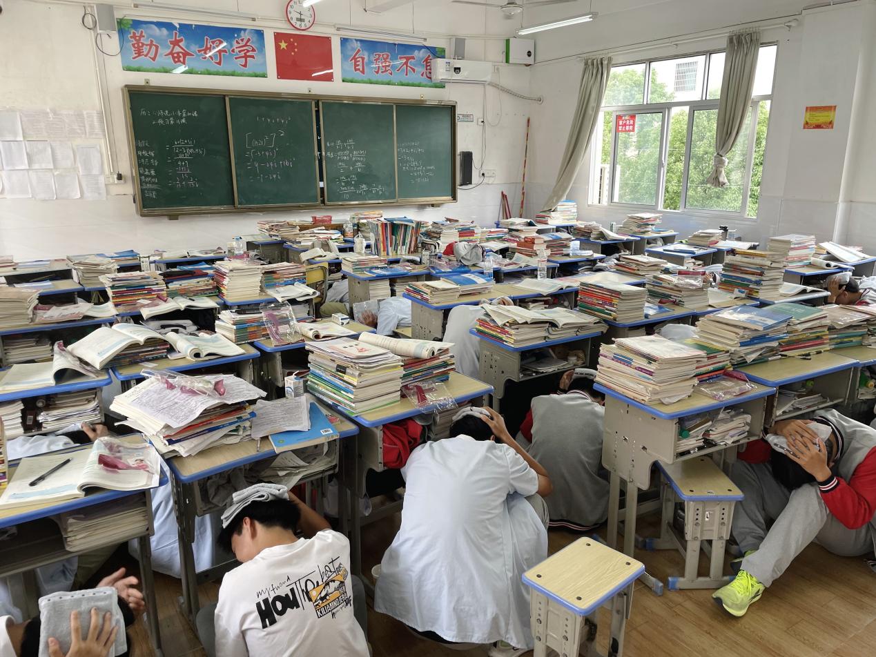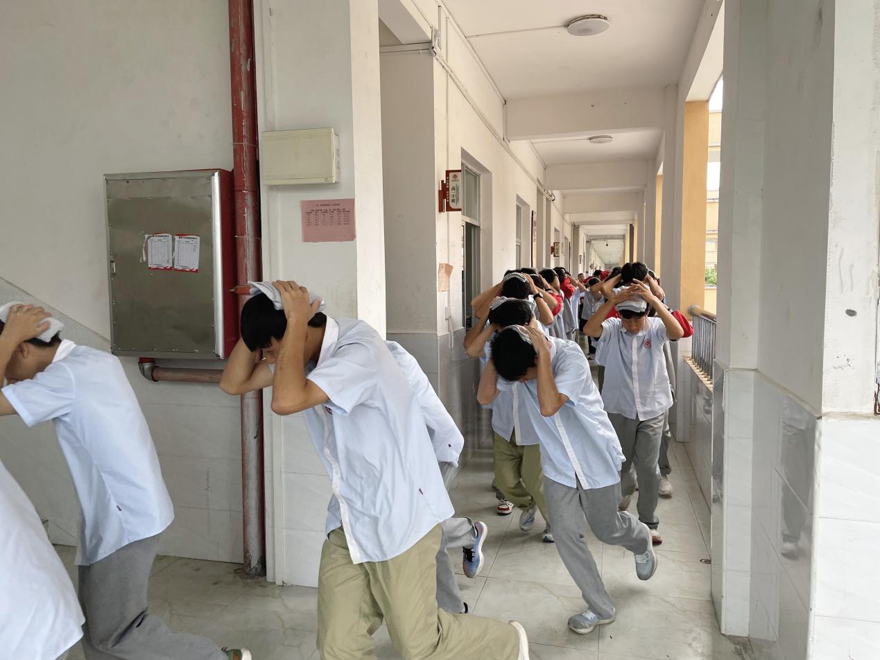 地震警報(bào)拉響、逃生疏散、有序撤離……隨著警報(bào)響起,各樓層管理員、班主任老師迅速到達(dá)指定位置,組織學(xué)生撤離。撤離過(guò)程中,同學(xué)們或雙手護(hù)頭,或用毛巾、書(shū)本及其他物件保護(hù)頭部,在教師的帶領(lǐng)下快速、有序地按照疏散路線撤離到安全地帶。整個(gè)撤離緊張有序,參演師生全員安全撤離到達(dá)指定地點(diǎn)僅用 1分54秒。