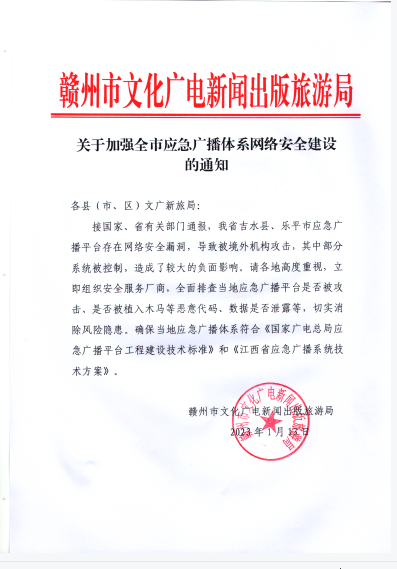 關于加強全市應急廣播體系網(wǎng)絡安全建設的通知